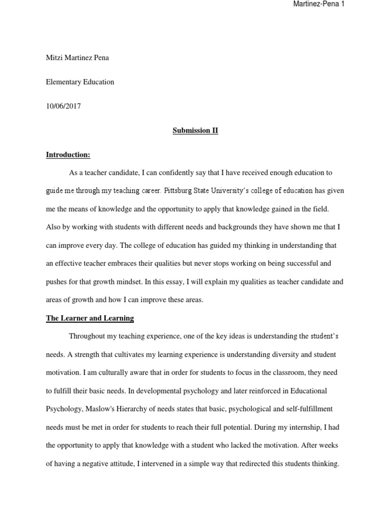 pushes for that growth mindset. In this essay, I will explain my qualities as teacher candidate and