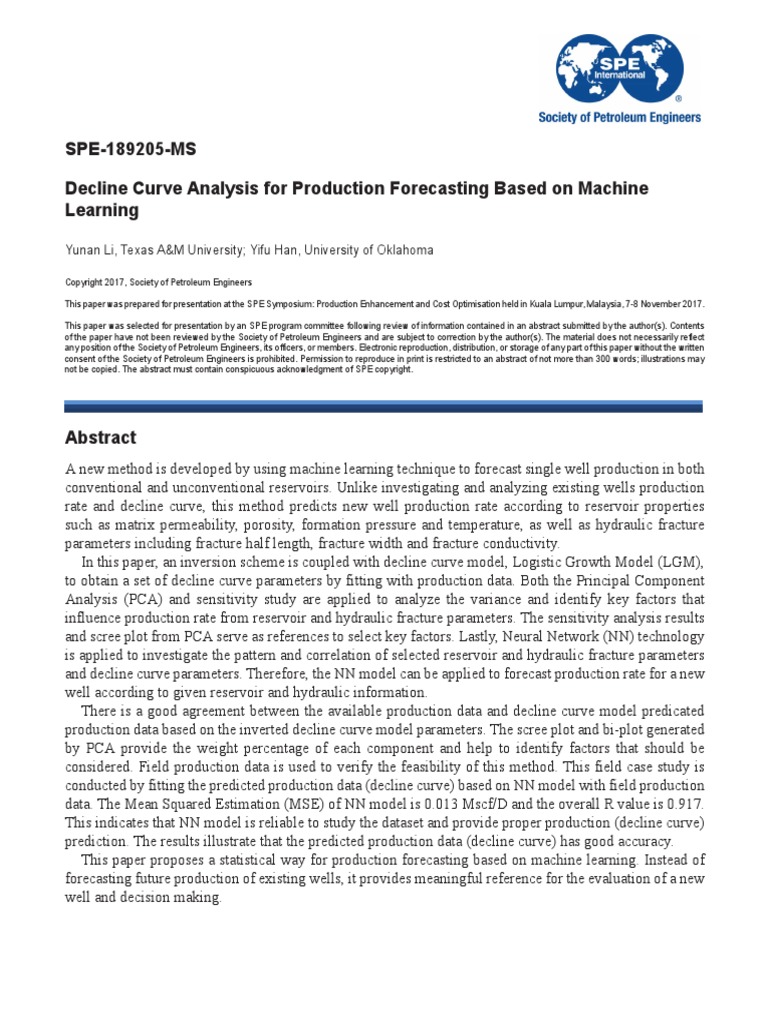 to obtain a set of decline curve parameters by fitting with production data. Both the Principal Component