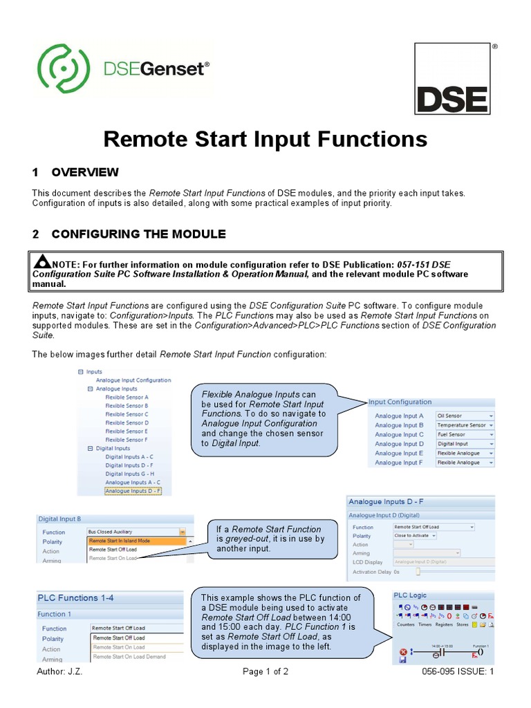 This document describes the Remote Start Input Functions of DSE modules, and the priority each input takes.