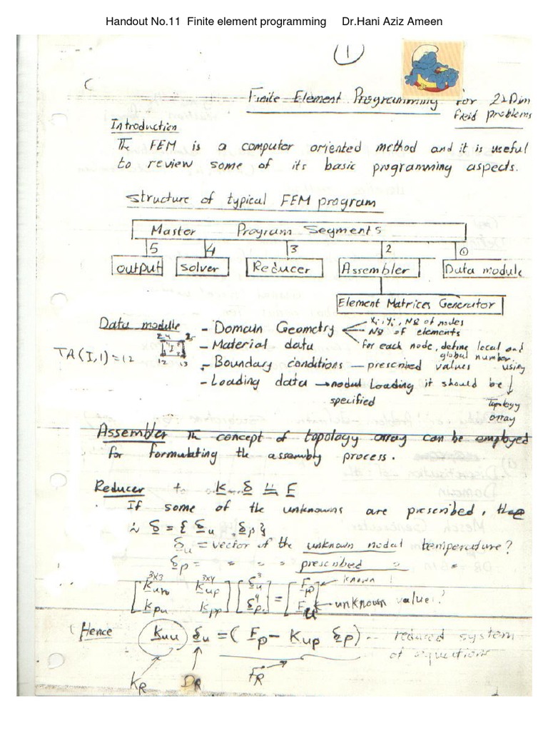 Handout No.11 Finite element programming Dr.Hani Aziz Ameen