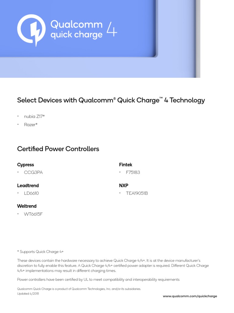 Select Devices with Qualcomm® Quick Charge™ 4 Technology