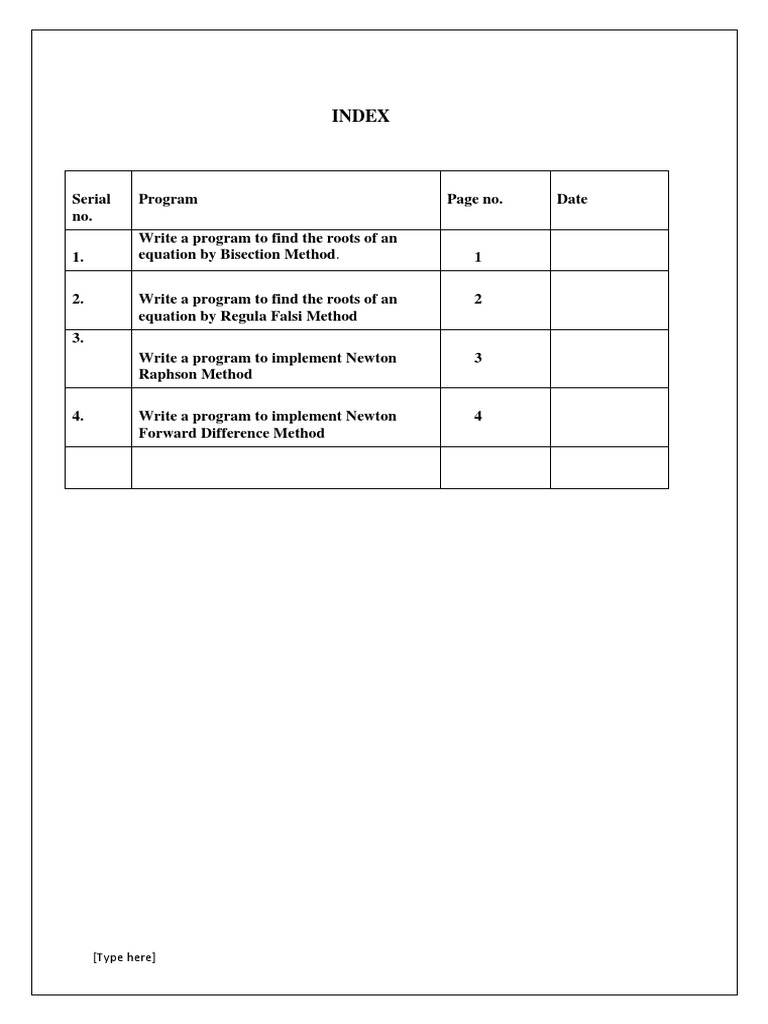Serial Program Page no. Date