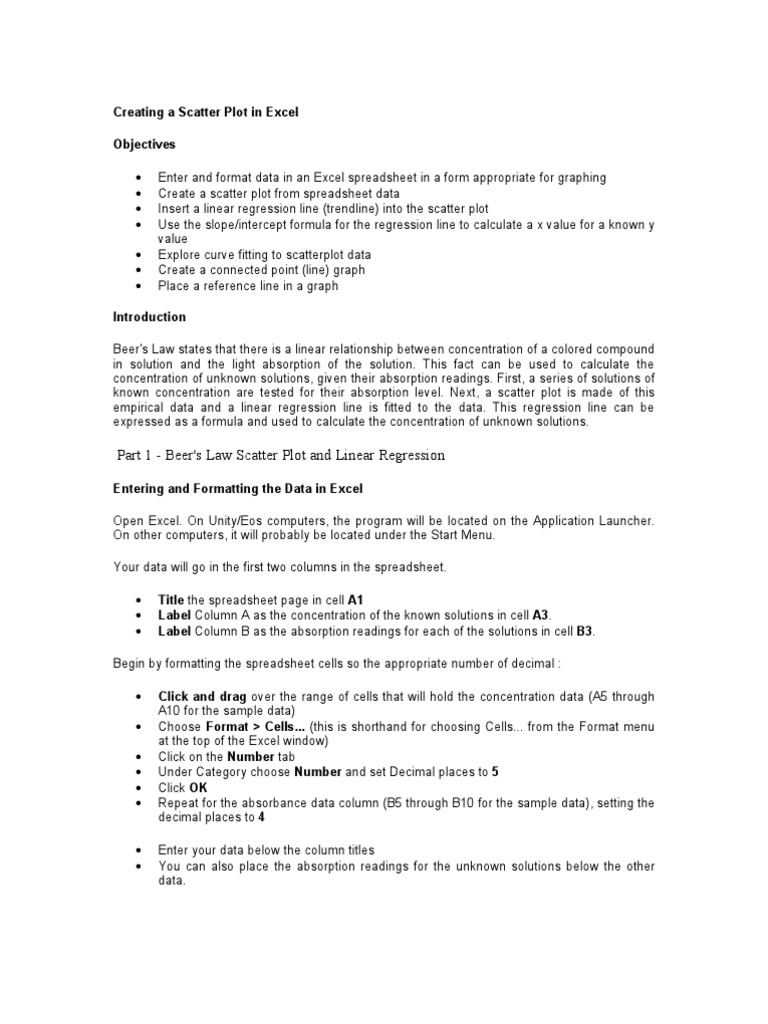 known concentration are tested for their absorption level. Next, a scatter plot is made of this