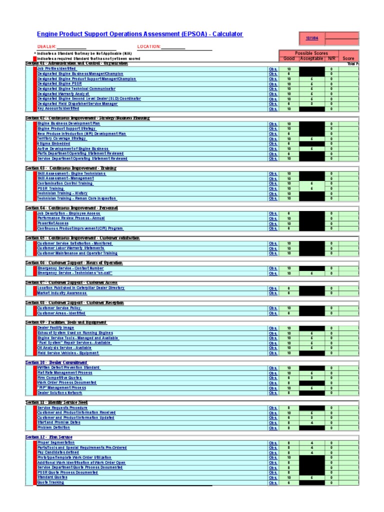 Engine Product Support Operations Assessment (EPSOA) - Calculator