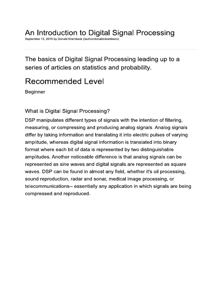 Why Use Digital Signal Processing?To understand how digital signal processing, or DSP, compares with analog