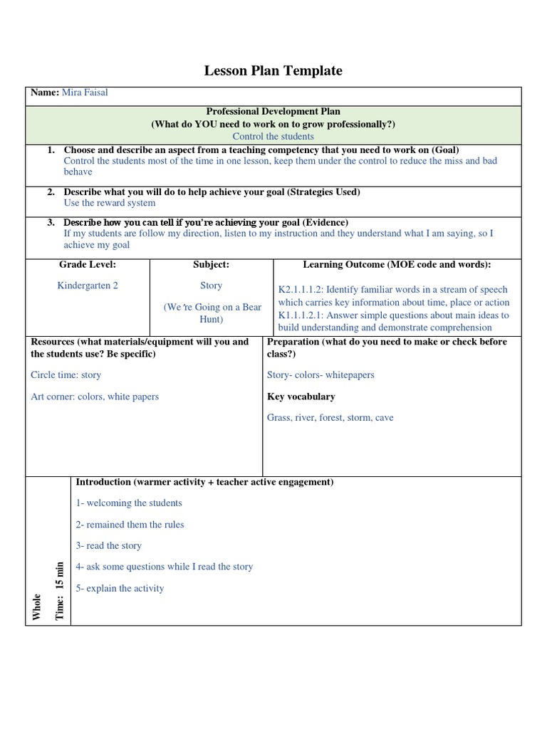 Grade Level: Subject: Learning Outcome (MOE code and words):