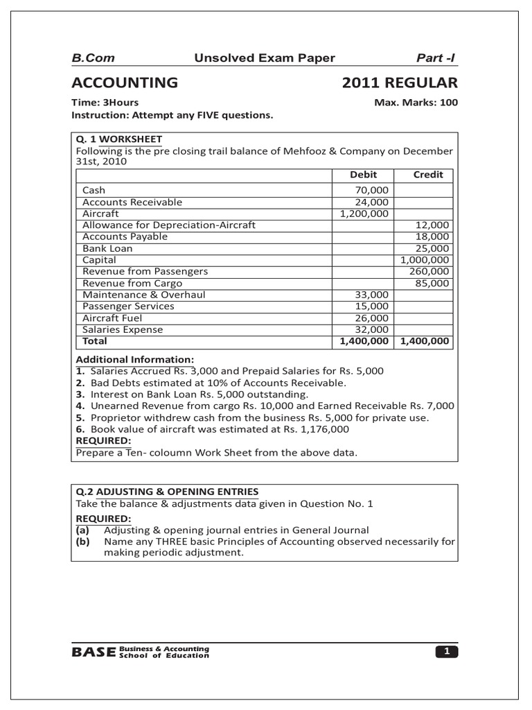 Q.3 (a) ACCOUNTS RECEIVABLE