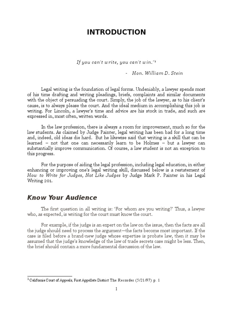 law students. As claimed by Judge Painter, legal writing has been bad for a long time