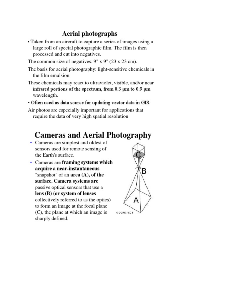 • In aerial photography, o can be considered infinite, so aerial cameras