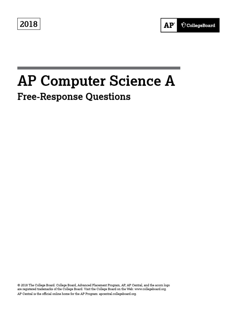 2018 AP® COMPUTER SCIENCE A FREE-RESPONSE QUESTIONS
