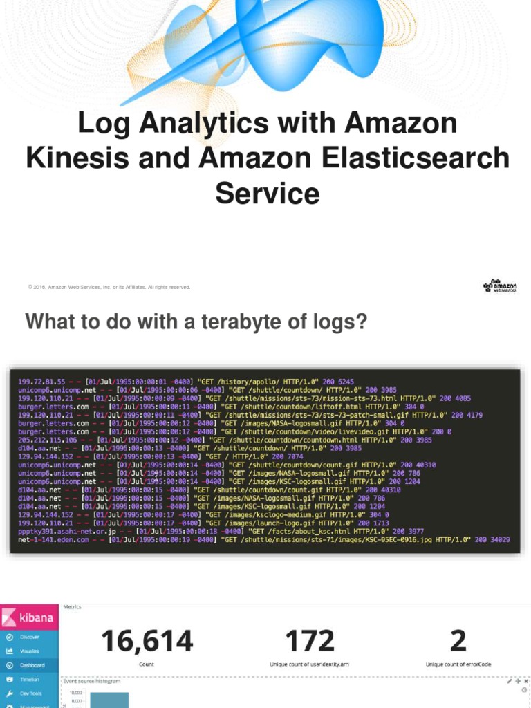 Amazon S3, Amazon Redshift and Amazon Elasticsearch, and a