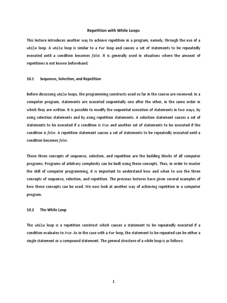 concepts of sequence, selection, and repetition. The previous lectures have given several examples of