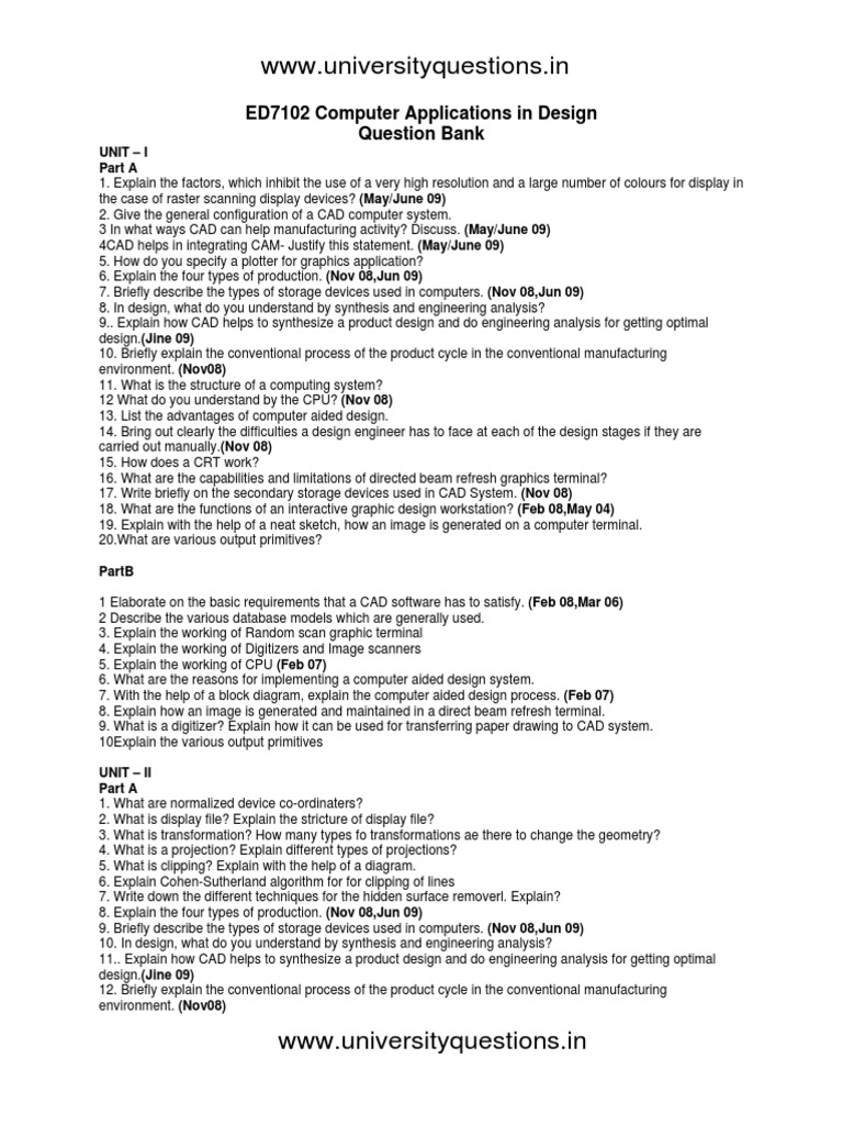 WWW - Universityquestions.in: ED7102 Computer Applications in Design Question Bank