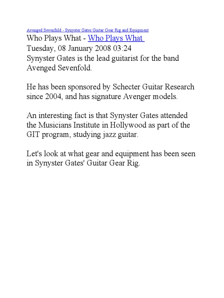 Avenged Sevenfold - Synyster Gates Guitar Gear Rig and Equipment
