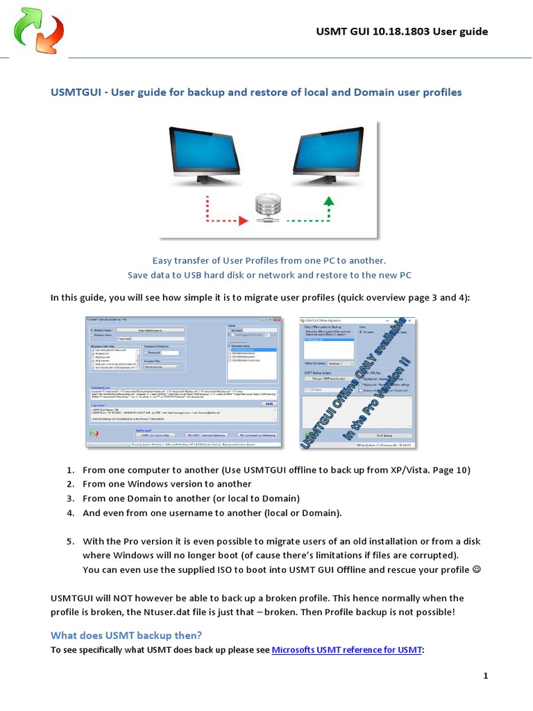 USMTGUI - User guide for backup and restore of local and Domain user profiles .............................................. 1
