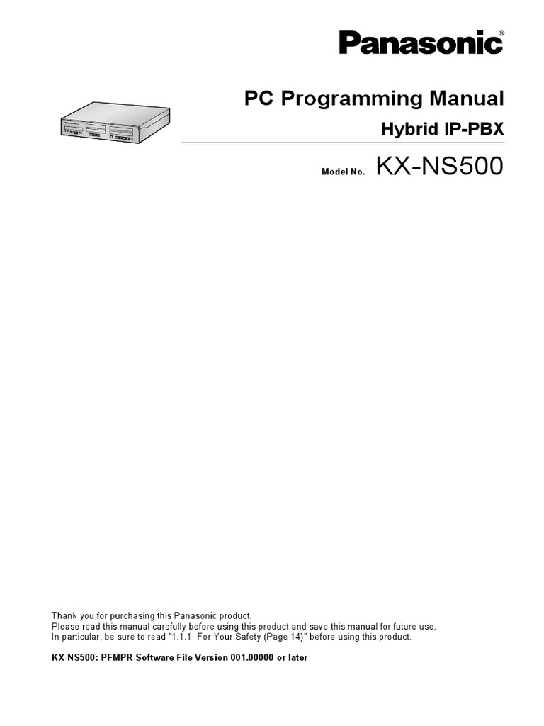 KX-NS500: PFMPR Software File Version 001.00000 or later