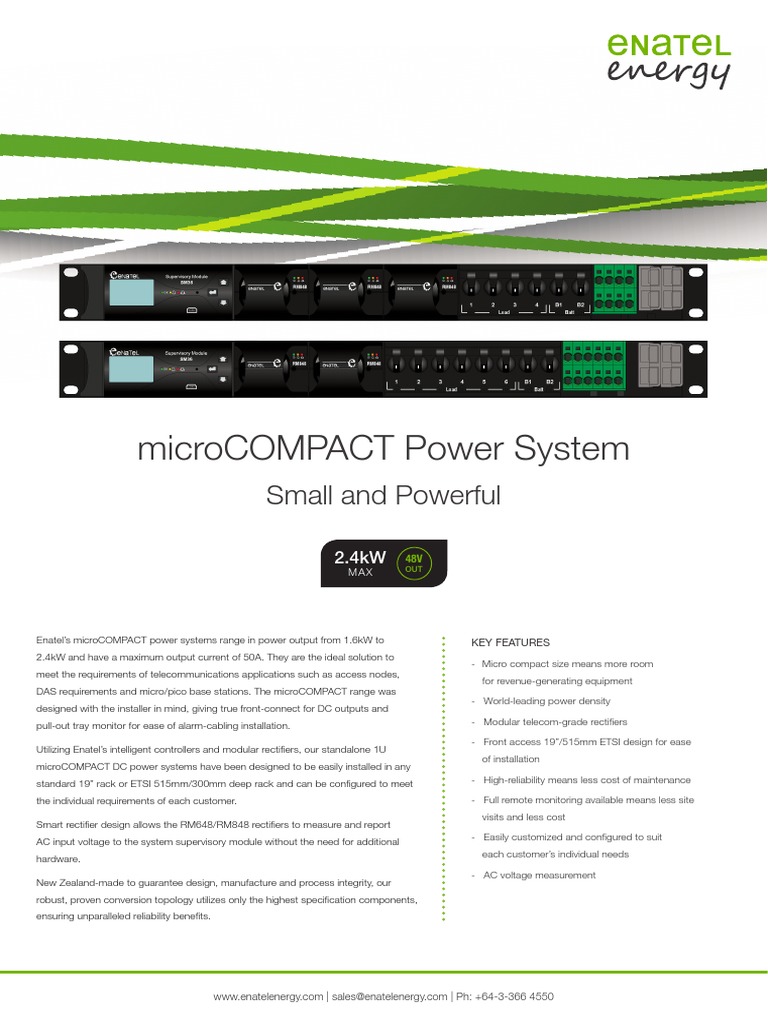 Enatel’s microCOMPACT power systems range in power output from 1.6kW to KEY FEATURES