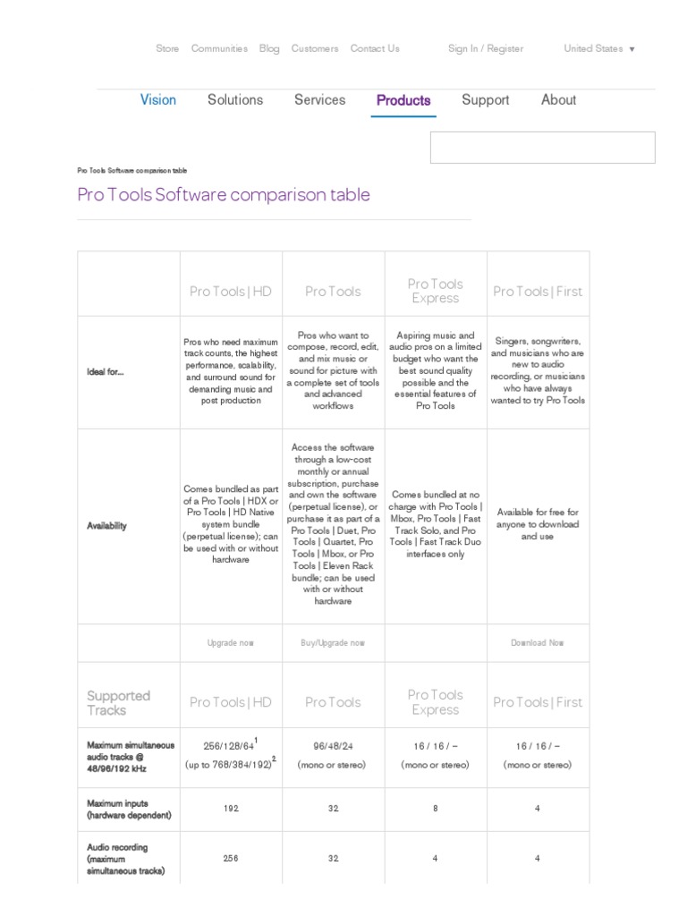 Pro Tools Software comparison table