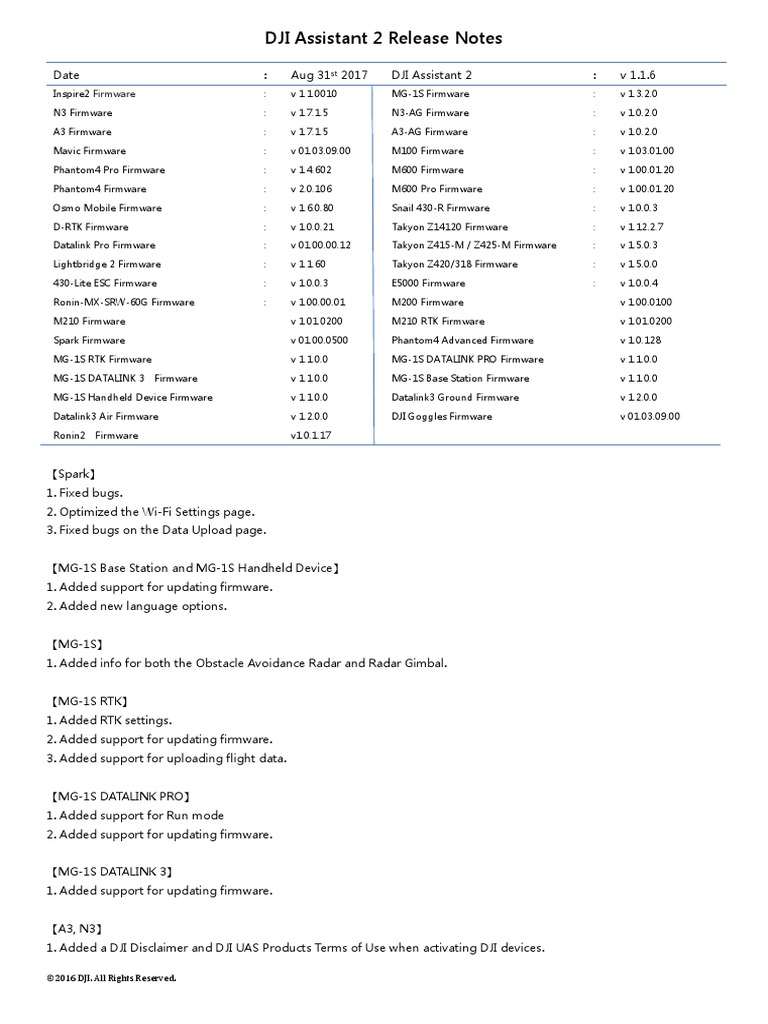Date : Jun 16th, 2017 DJI Assistant 2 : v 1.1.2 / v 1.1.2-2