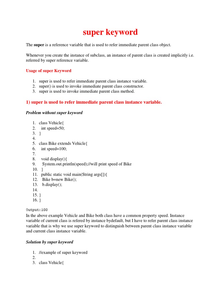 11. System.out.println(super.speed);//will print speed of Vehicle now