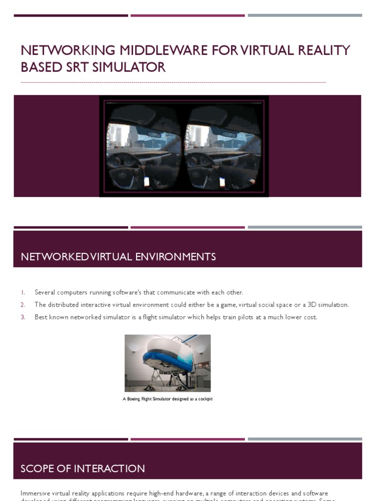 ISSUES IN NETWORKING FOR VIRTUAL REALITY BASED SRT