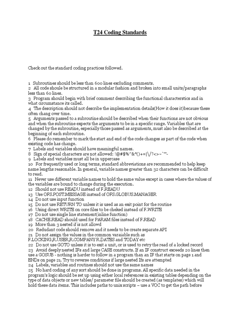 T24 Coding Standards