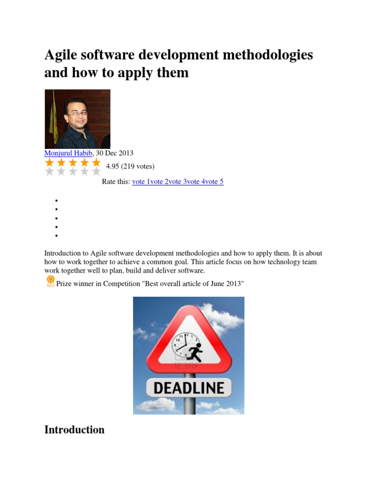 Introduction to Agile software development methodologies and how to apply them. It is about