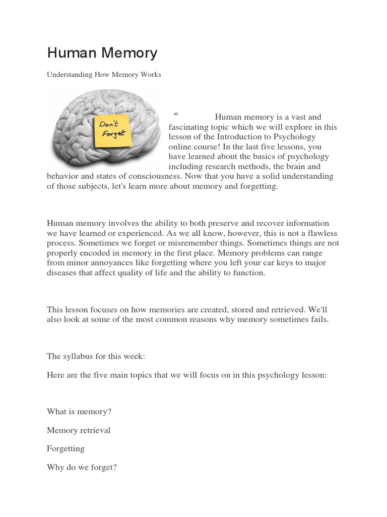 This lesson focuses on how memories are created, stored and retrieved. We'll