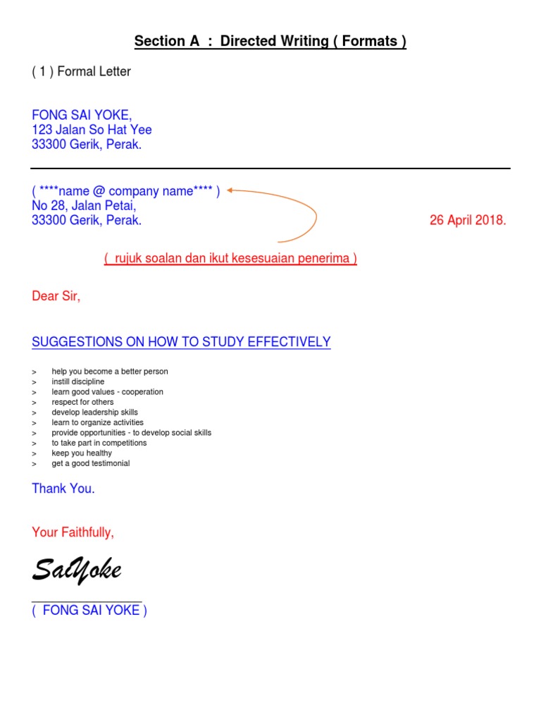 Section A : Directed Writing ( Formats )