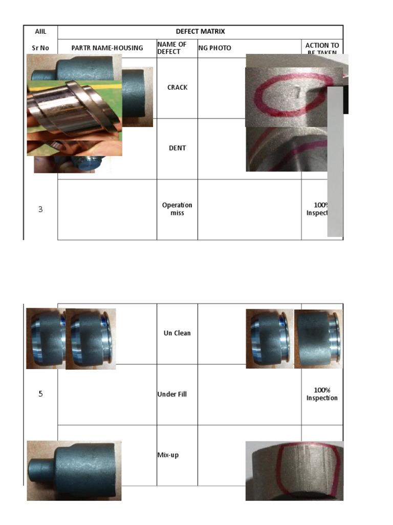 Sr. No Part Category OK PART PHOTO DEFECTS