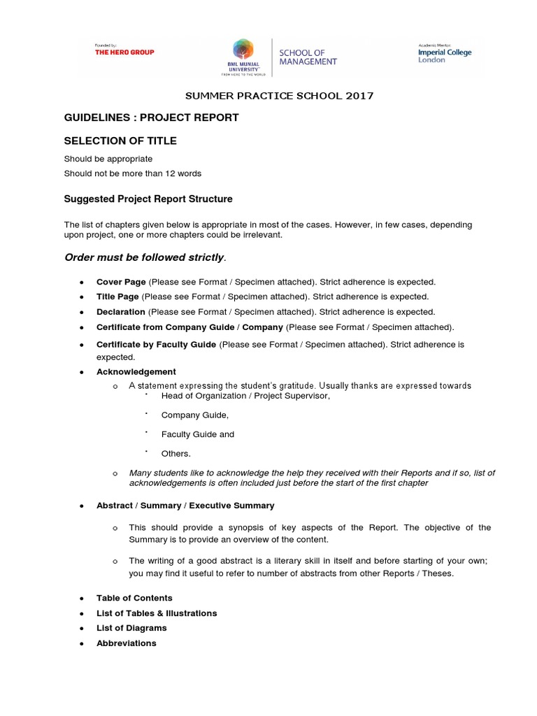 GUIDELINES : PROJECT REPORT