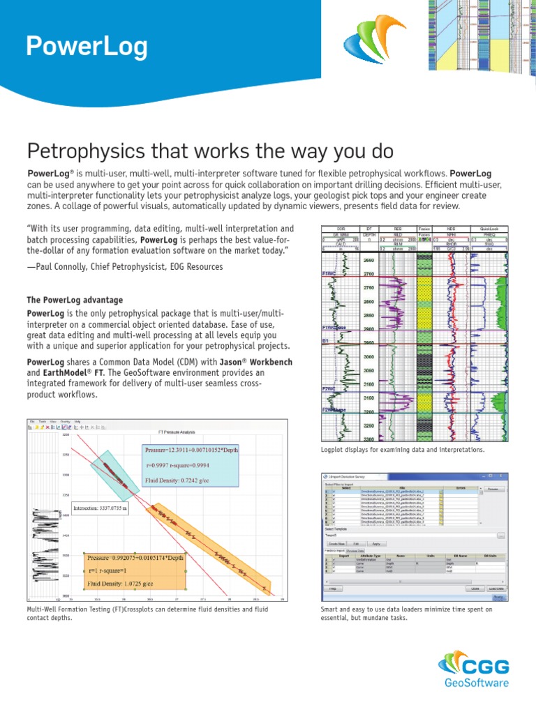 PowerLog® is multi-user, multi-well, multi-interpreter software tuned for flexible petrophysical workflows. PowerLog