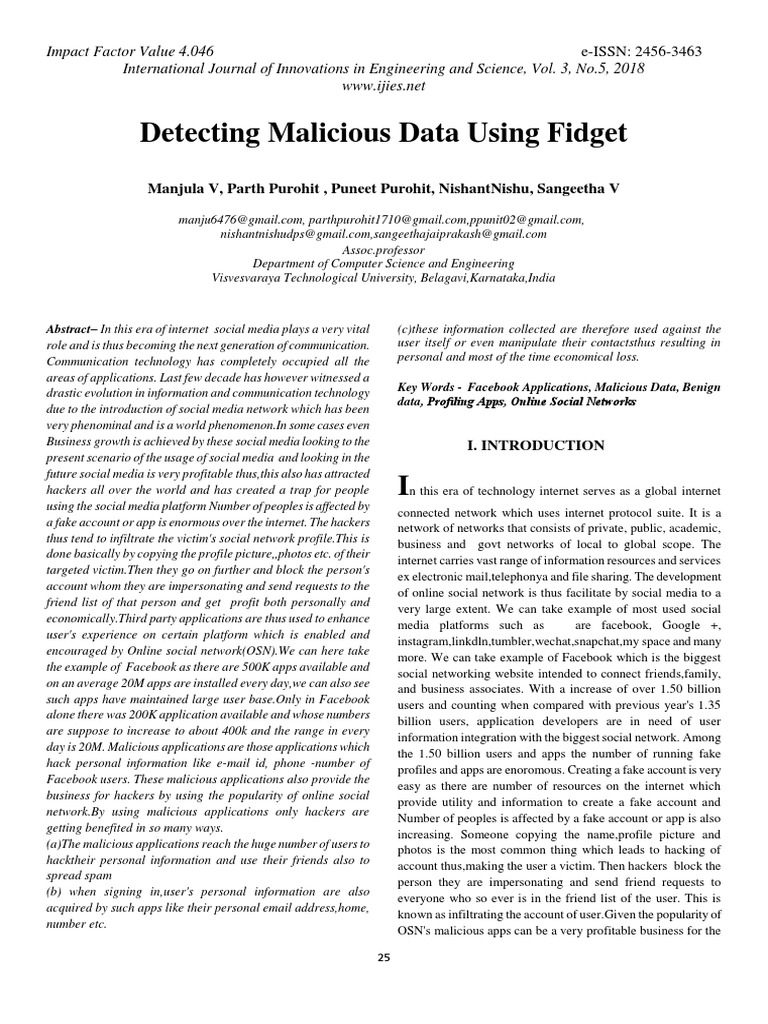 can take the example of Facebook again as Social malware is like SVM, Decision Tree, Naive Bayesian, and International