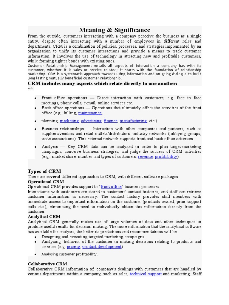 CRM includes many aspects which relate directly to one another:
