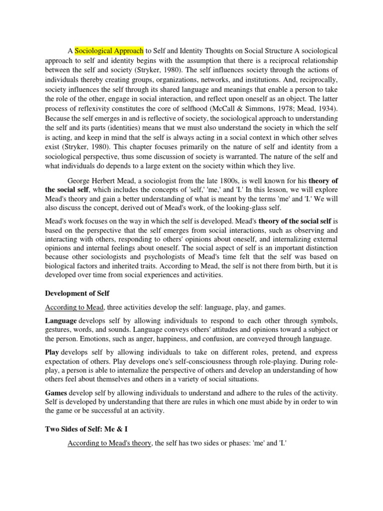 sociological perspective, thus some discussion of society is warranted. The nature of the self and
