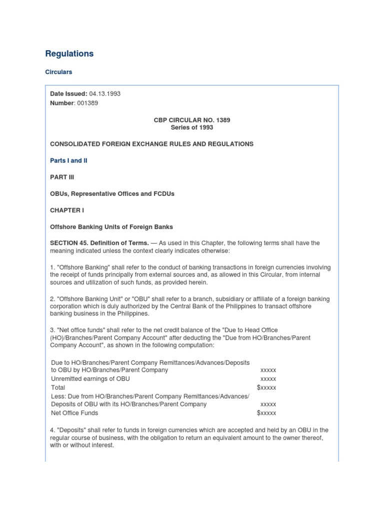 1. "Offshore Banking" shall refer to the conduct of banking transactions in foreign currencies involving