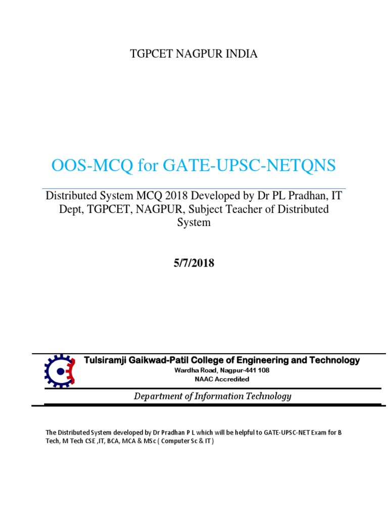 The Distributed System developed by Dr Pradhan P L which will be helpful to GATE-UPSC-NET Exam for B