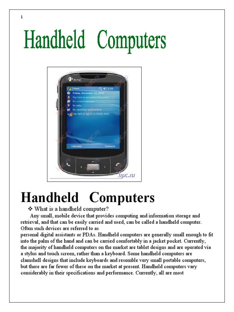 personal digital assistants or PDAs. Handheld computers are generally small enough to fit