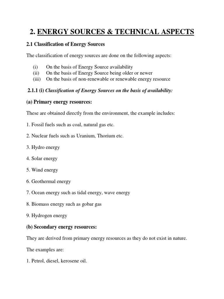 ENERGY SOURCES & TECHNICAL ASPECTS