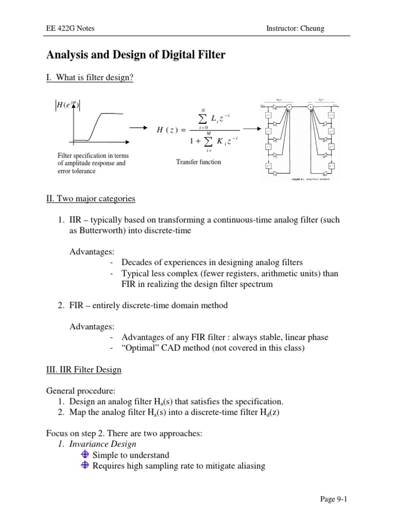 Analysis and Design of Digital Filter: EE 422G Notes Instructor: Cheung | PDF | Control Theory | Telecommunications Engineering