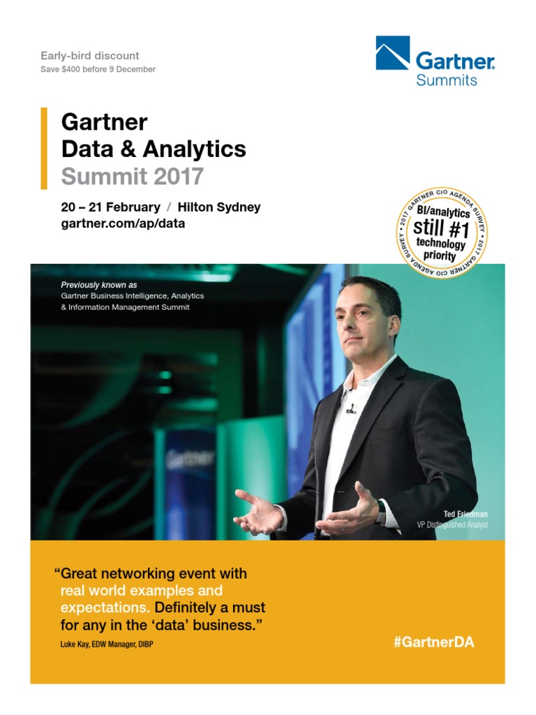 09:30 – 09:45 Welcome to the Gartner Data & Analytics Summit 2017 Ian Bertram