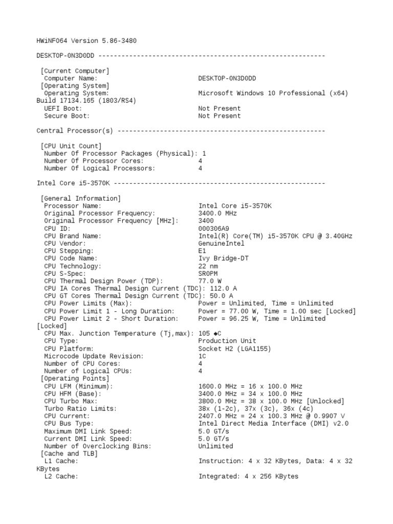CPU Brand Name: Intel(R) Core(TM) i5-3570K CPU @ 3.40GHz