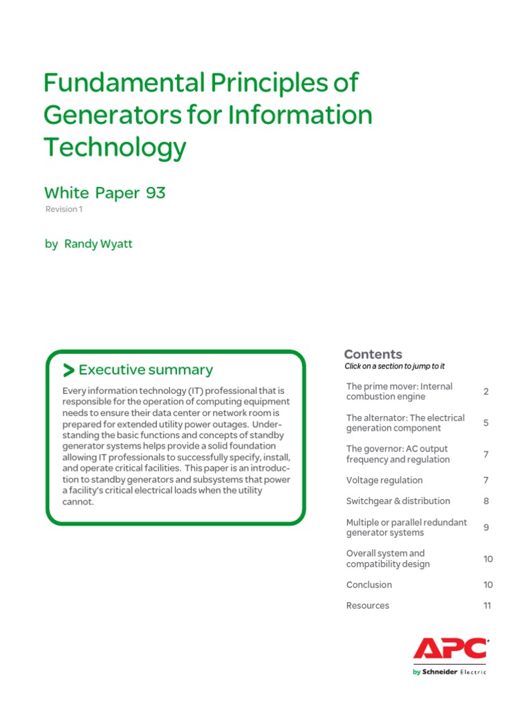 related APC by Schneider Electric papers on more advanced generator system topics, and