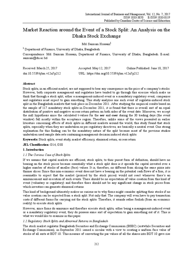 1.2 Regulatory Stock Splits and Abnormal Returns in Bangladesh