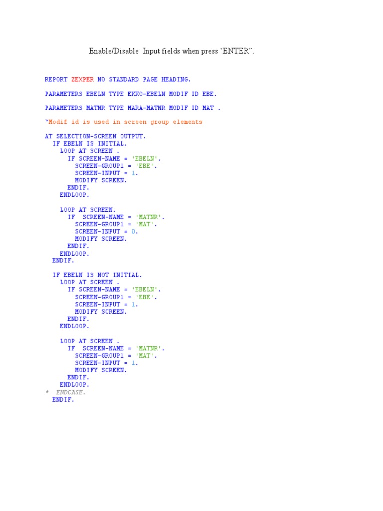 PARAMETERS EBELN TYPE EKKO-EBELN MODIF ID EBE.