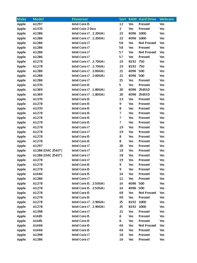 Apple A1278 Intel Core i5 47 Yes Not Present Yes