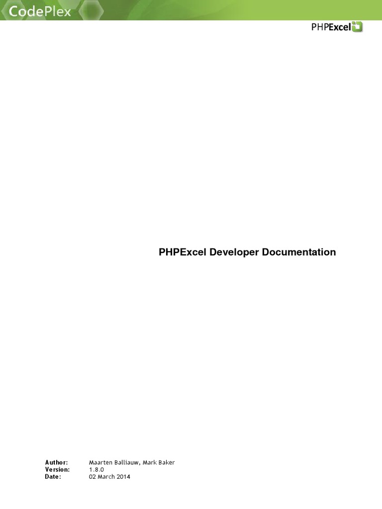 6.1.2. Creating PHPExcel_Writer_IWriter using PHPExcel_IOFactory ............................ 39