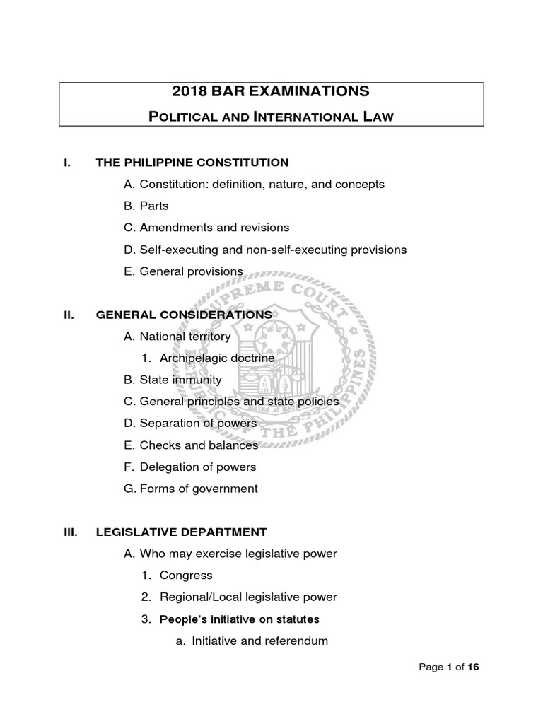 2018 Bar Examinations POLITICAL AND INTERNATIONAL LAW