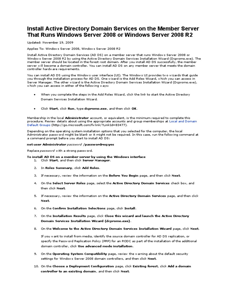 Windows Server 2008 R2 by using the Active Directory Domain Services Installation Wizard (Dcpromo.exe). The