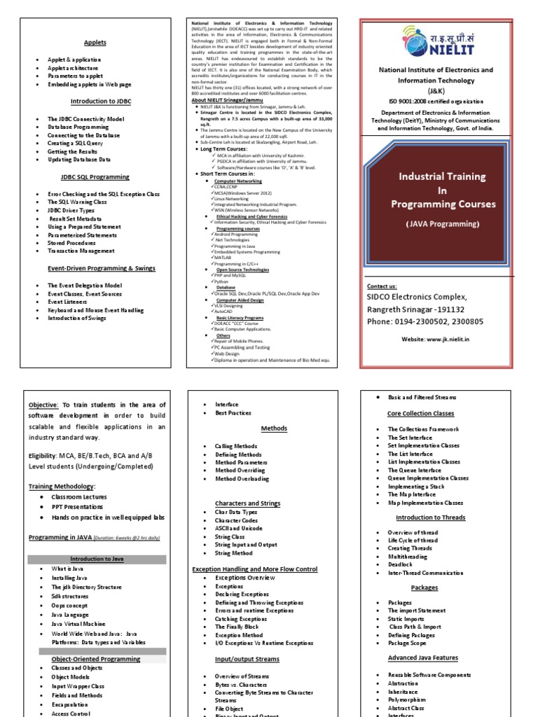 Applets Technology (IECT). NIELIT is engaged both in Formal & Non-Formal